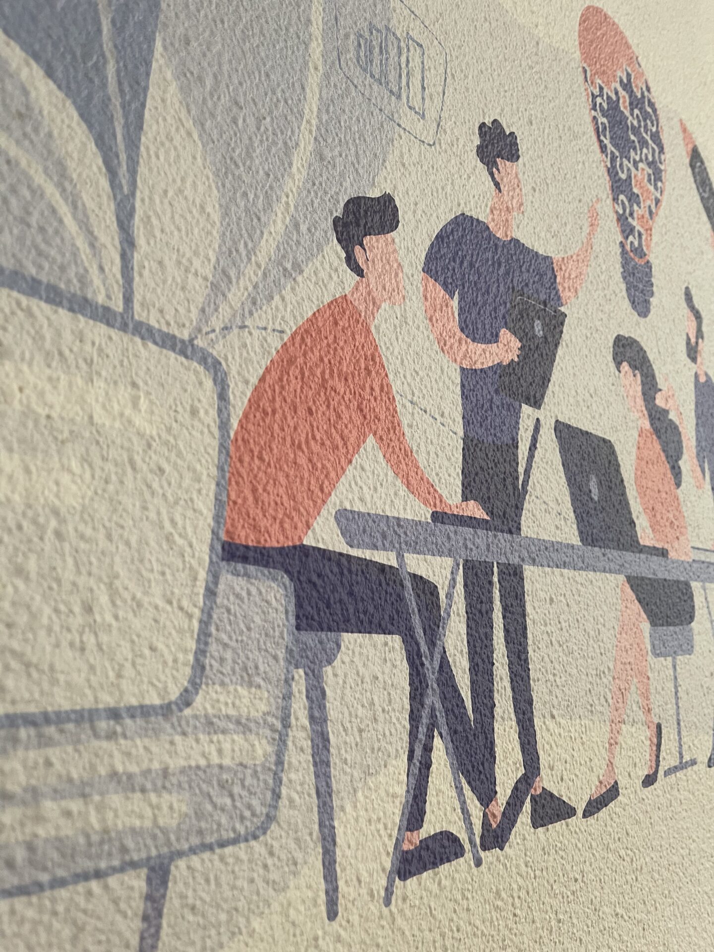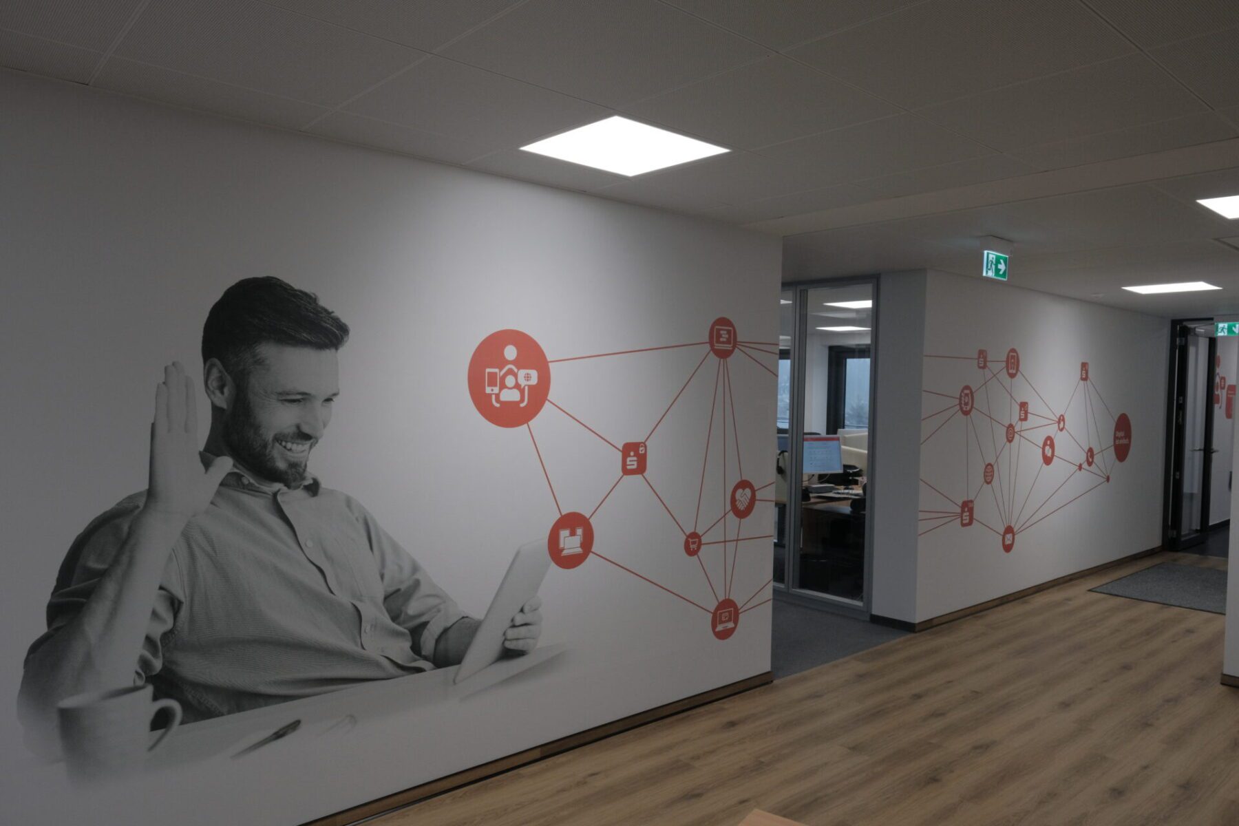 Een sfeerloos kantoor werkt door in alles—motivatie, indruk en betrokkenheid. Met een goedgekozen muurprint geef je de ruimte een duidelijke uitstraling die past bij jullie identiteit. Laat bijvoorbeeld je merkverhaal zien, een visuele weergave van het team of een tijdlijn van jullie groei. Bekijk de voorbeelden hiernaast en ontdek hoe onze print service jouw kantoorruimte kan verfrissen en een productieve sfeer kan creëren voor jouw team en bezoekers.